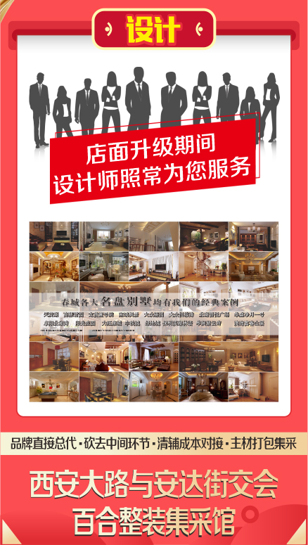 重要消息:百合裝飾店面全新升級,一線大牌震撼來襲。